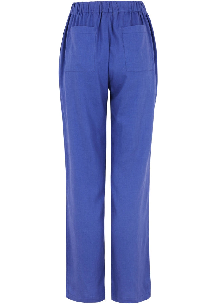 Det lette materiale i en blød viskose- og hørblanding sikrer en behagelig følelse mod huden samt et smukt, naturligt fald. Den justerbare talje med snøre giver fleksibilitet og optimal pasform, så du kan føle dig godt tilpas hele dagen.