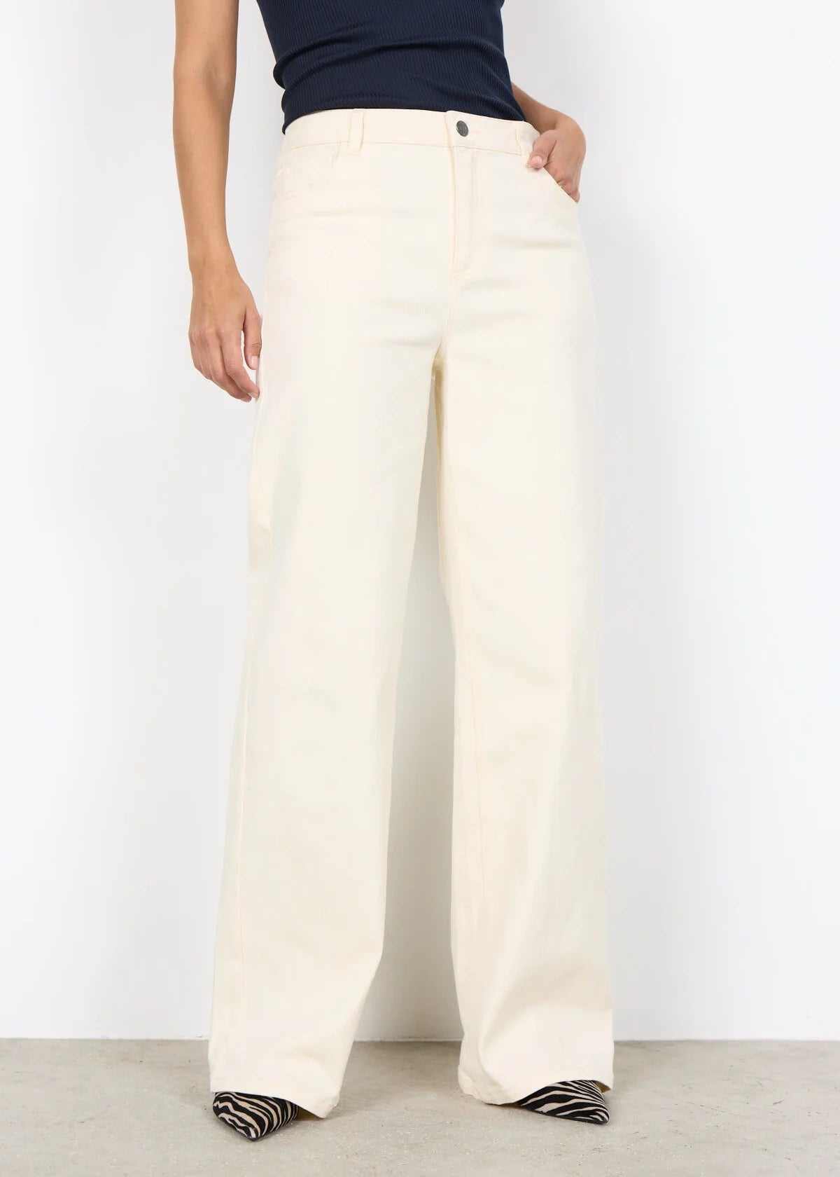 Disse stilfulde bukser har brede ben, knaplukning og bæltestropper for ekstra funktionalitet. Sæt dem sammen med en tætsiddende top og sneakers for et elegant, afslappet look.