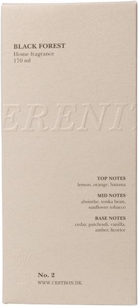 Diffuserens navn Black Forest antyder en dyb og rig skovduft inspireret af naturens mørke træer og jordlige noter. Duften skaber en afslappende og stemningsfuld atmosfære, ideel til badeværelse, soveværelse eller stue.