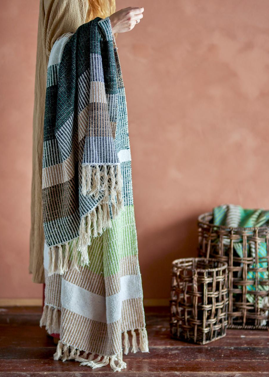 Isnel Plaiden fra Creative Collection er vævet af genanvendt bomuld med skønne striber i lyse nuancer samt frynser i begge ender. Lad plaiden tilføje hygge i hjemmet eller tag den med udenfor for at nyde de lange sommeraftener.