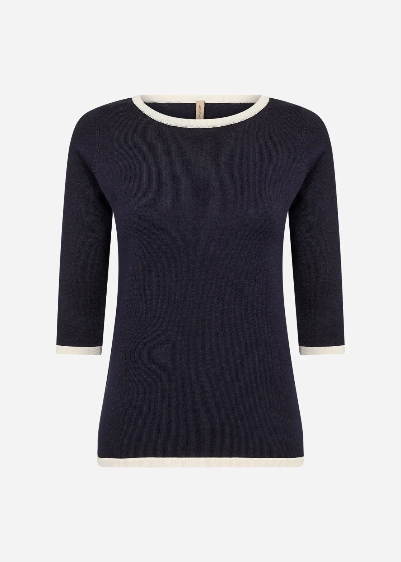 Denne elegante top har halvlange ærmer og en kontrastfarvet detalje ved kraven og manchetterne. Style den med skræddersyede bukser eller en elegant nederdel for et poleret look.