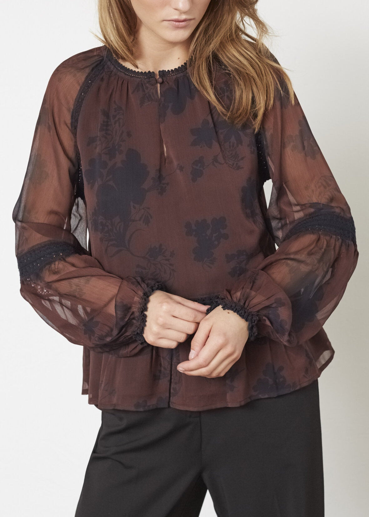 love1407 er en let, gennemsigtig bluse med et printet mønster.