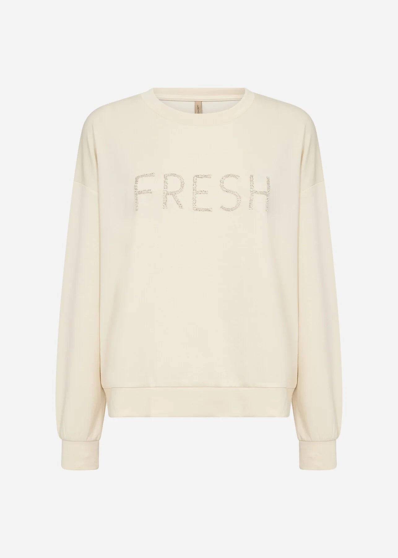 SC-BANU 291, sweatshirt, er fremstillet af 48 % modal, 48 % polyester og 4 % elastan. Den har en ribbet rund halsudskæring, lange ærmer med manchetter og et print foran. Denne elegante sweatshirt passer godt sammen med jeans eller leggings for et stilfuldt og behageligt outfit.